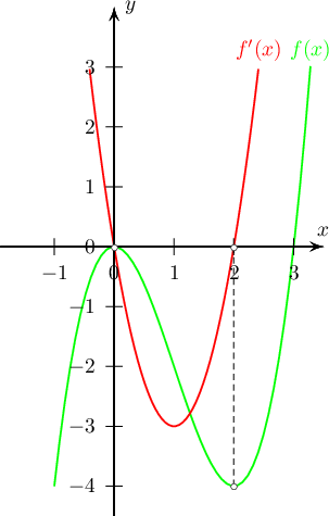 Бодолт: $f^\prime(x)=3x^2-6x$ тул