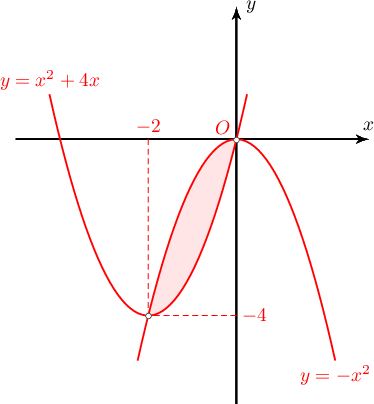 $y=x^2+4x$ ба $y=-x^2$ параболуудаар хүрээлэгдсэн дүрсийн талбайг ол.