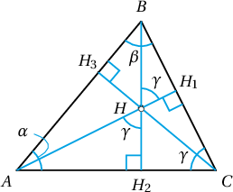 $\angle HBH_1=\angle HAH_2=90^\circ-\gamma$ тул $\angle H_1HB=\angle H_2HA=\gamma$ байна. Иймд