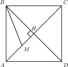 Бодолт: Квадратын диагоналын урт нь $5+7=12$ байна. Диагоналын хагас нь $6$ тул $BH=6$, $MH=AH-AM=7-6=1$ байна. Иймд Пифагорын теоремоор
