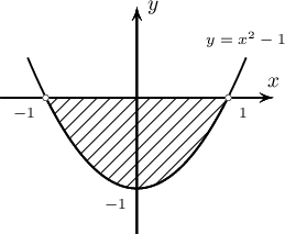 $y=x^2-1$ парабол ба $OX$ тэнхлэгийн хооронд үүсэх дүрсийн талбайг ол.