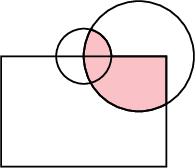 $A$ жижиг дугуй, $B$ том дугуй, $C$ тэгш өнцөгт дотор орших цэгүүдийн олонлог. Будагдсан хэсэг нь олонлогууд дээрх ямар үйлдлийн үр дүнд үүссэн бэ?