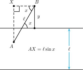 хүртэлх зайг $y$ гэе. Өгөгдсөн шулуунаас цагийн зүүний эсрэг тоолоход хэрчимтэй