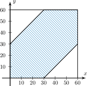 Бодолт: Уулзах муж буюу $|x-y|\le 30$ мужийг дүрсэлбэл