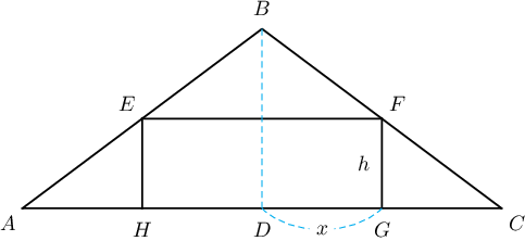 Заавар: Тэгш өнцөгт маань суурьт буулгасан өндрийн хувьд тэгш хэмтэй байх нь ойлгомжтой. Өндрийн сууриас тэгш өнцөгтийн суурь дээрх орой хүртэлх зайг $x$ гээд талбайг нь $x$-ээр илэрхийл.