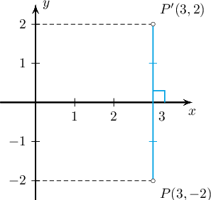 $P(3;-2)$ цэгийг $OX$ тэнхлэгийн хувьд тэгш хэмтэй хувиргахад ямар цэг гарах вэ?