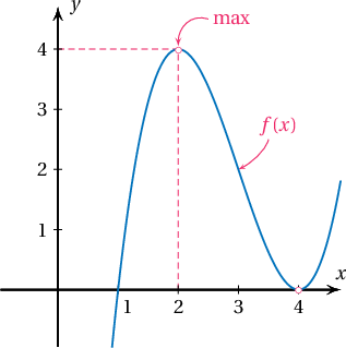 Бодолт: $$f^\prime(x)=3(x-4)(x-2)$$ тул $x=4$ дээр минимумтай, $x=2$ цэг дээр максимумтай. Иймд максимум утга нь