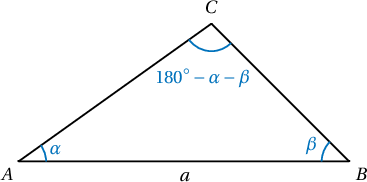$$\dfrac{BC}{\sin\alpha}=\dfrac{AB}{\sin(180^\circ-\alpha-\beta)}=\dfrac{a}{\sin(\alpha+\beta)}$$