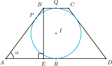 $$AB=AC=\dfrac{BE}{\sin\alpha}=\dfrac{2r}{\sin\alpha}$$