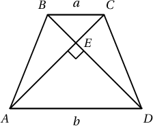 Адил хажуут трапецийн сууриуд $a$, $b$ ба диагоналиуд перпендикуляр бол талбайг ол.
