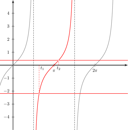 болох ба $6t^2-5t-24=0$ тэгшитгэл 2 бодит шийдтэй бөгөөд эдгээрийг $t_1$, $t_2$ гэвэл $\tg x=t_1$, $\tg x=t_2$ тэгшитгэлүүд $[\pi/2; 3\pi/2]$ завсарт тус бүр нэг шийдтэй байна.