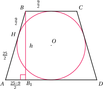 Тойрогт багтаж болох ба түүнийг багтааж болох трапецийн сууриуд 25 ба 9 бол түүний талбайг ол.