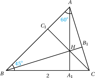 $ABC$ гурвалжны хувьд $BC=2$, $\angle BAC=60^\circ$, $\angle ABC=45^\circ$ ба орто төв нь $H$ бол $BH$ хэрчмийн уртыг ол.