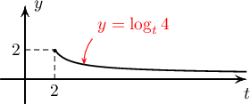 Мөн $t=x^2-2x+3=(x-1)^2+2\ge 2$ тул $y=\log_t4$, $t\ge 2$ функцийн утгын мужийг олох бодлого гэж бодож болно. $y=\log_t4=\dfrac{1}{\log_4t}$, $\log_4t$ төгсгөлгүй өсдөг, $t\ge 2$ тул $\dfrac12\le \log_4t$ болохыг тооцвол $y=\log_t4$-ийн утгийн муж $]0;2]$ байна.