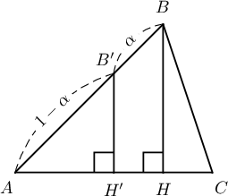 байна. Нөгөө талаас $S_{AB'C}=\dfrac12\cdot AC\cdot B'H'$, $S_{ABC}=\dfrac12\cdot AC\cdot BH$ тул