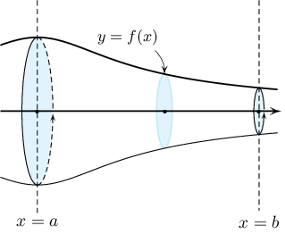 Заавар: $y=f(x)$ функцийн графикийн $a\le x\le b$ хэсгийг $OX$ тэнхлэгийг тойруулан эргүүлэхэд үүсэх биетийн эзлэхүүн