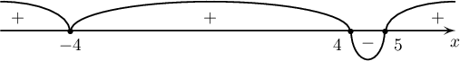 Бодолт: $(x+4)^2(x-4)(x-5)\le 0$ тэнцэтгэл бишээ интервалын аргаар бодвол