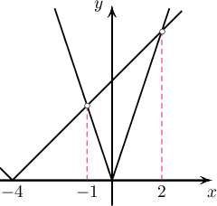 зургаас харахад $y=|x+4|$ функцийн график $y=3|x|$ функцийн графикаас дээр орших хэсэг буюу $|x+4|\ge 3|x|$ байх хэсэг нь $[-1;2]$ муж байна.