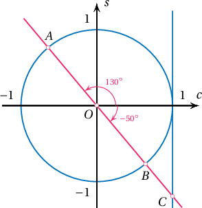Зургаас харахад тангес нь $\tg130^\circ$-тэй тэнцүү $]-90^\circ;90^\circ[$ байх өнцөг нь $-50^\circ$ байна.