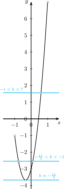 Энэ нь $y=f(s)=6s^2+4s-3$ парабол $y=k$ шулуунтай $s\in]-1; 1[$ байх яг нэг цэгээр огтлолцоно гэсэн үг.