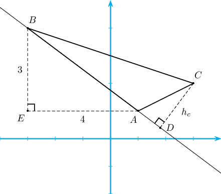 - $AB=5$. $h_c=2$ байна. Учир нь $C$ цэгээс $AB$ шулуун хүртэлх зай нь $h$ байна. Иймд $S=\dfrac{5\cdot 2}{2}=5$.