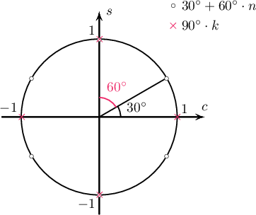$\alpha=90^{\circ}\cdot k$ ба $\beta=30^{\circ}+60^{\circ}\cdot n$ , $k, n\in\mathbb{Z}$ хэлбэрийн томьёогоор илэрхийлэгдэх өнцгүүдийн давхцлыг ол.