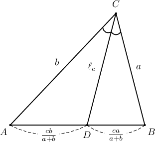 Гурвалжны өнцгийн биссектрис нь эсрэг орших талаа налсан талуудтай нь пропорционал хэсгүүдэд хуваадаг: $$\dfrac{AC}{AD}=\dfrac{BC}{BD}$$