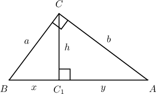 Тэгш өнцөгт гурвалжны чанараар хуваагдсан хэсгүүдийн урт нь: $$x=\dfrac{a^2}{c}=\dfrac{9^2}{15}=\dfrac{27}{5}$$ $$y=\dfrac{b^2}{c}=\dfrac{12^2}{15}=\dfrac{48}{5}$$ байна.
