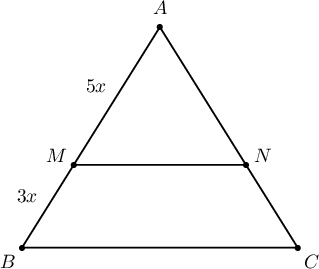 $\triangle ABC\sim\triangle AMN$ ба төсөөгийн харьцаа нь $$\dfrac{AM}{AB}=\dfrac{5x}{5x+3x}=\dfrac{5}{8}$$