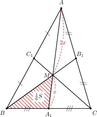 Гурвалжны медианууд нь талбайгаа 6 тэнцүү талбайтай хэсэгт хуваадаг.