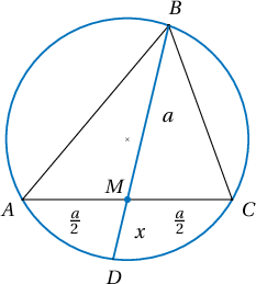 $ABC$ гурвалжны $BC$ талын медианы үргэлжлэл багтаасан тойрогтой $D$ цэгт огтлолцжээ. Хэрэв $BC=a$ тал медиантайгаа ижил урттай бол $AD$-ийн урт аль нь вэ?