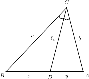 Гурвалжны өнцгийн биссектрис нь эсрэг орших талаа налсан талуудтай нь пропорционал хэсгүүдэд хуваадаг: $$\dfrac{BC}{BD}=\dfrac{AC}{AD}\Leftrightarrow\dfrac{a}{x}=\dfrac{b}{y}$$