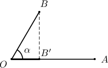 $\overrightarrow{OB}$ векторын $\overrightarrow{OA}$ дээрх проекц нь $|OB'|=|OB|\cdot\cos\alpha$