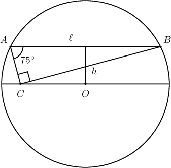 Бодолт: $AC=\ell\cos75^\circ$, $BC=\ell\sin75^\circ$ ба $ABC$ тэгш өнцөгт гурвалжин тул