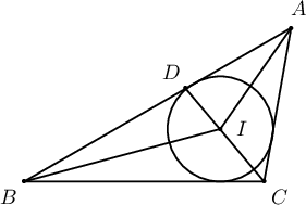 - $ABC$ гурвалжинд багтсан тойргийн төвийг $I$ гээд $\measuredangle ABC=30^\circ$, $\measuredangle ACB=100^\circ$ гэе. $IC$ шулуун $AB$ талыг $D$ цэгээр огтолдог бол $\measuredangle BID =\fbox{ef} ^\circ$, $\measuredangle AIC=\fbox{ghi}^\circ$ байна.
