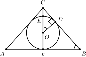 байг. $4CE=EF=2r$ тул $CE=0.5r$ болно. Нөгөө талаас $\measuredangle CBF=\measuredangle COD$ ба