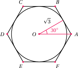 $$AB=OA=\dfrac{\sqrt3}{\cos30^\circ}=\dfrac{\sqrt{3}}{\frac{\sqrt3}{2}}=2$$