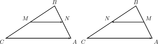 $\overrightarrow{MN}=\dfrac12\overrightarrow{CA}$ эсвэл $\overrightarrow{MN}=-\dfrac12\overrightarrow{CA}$ байх боломжтой. Иймд зөвхөн $\dfrac12$ байх боломжтой.